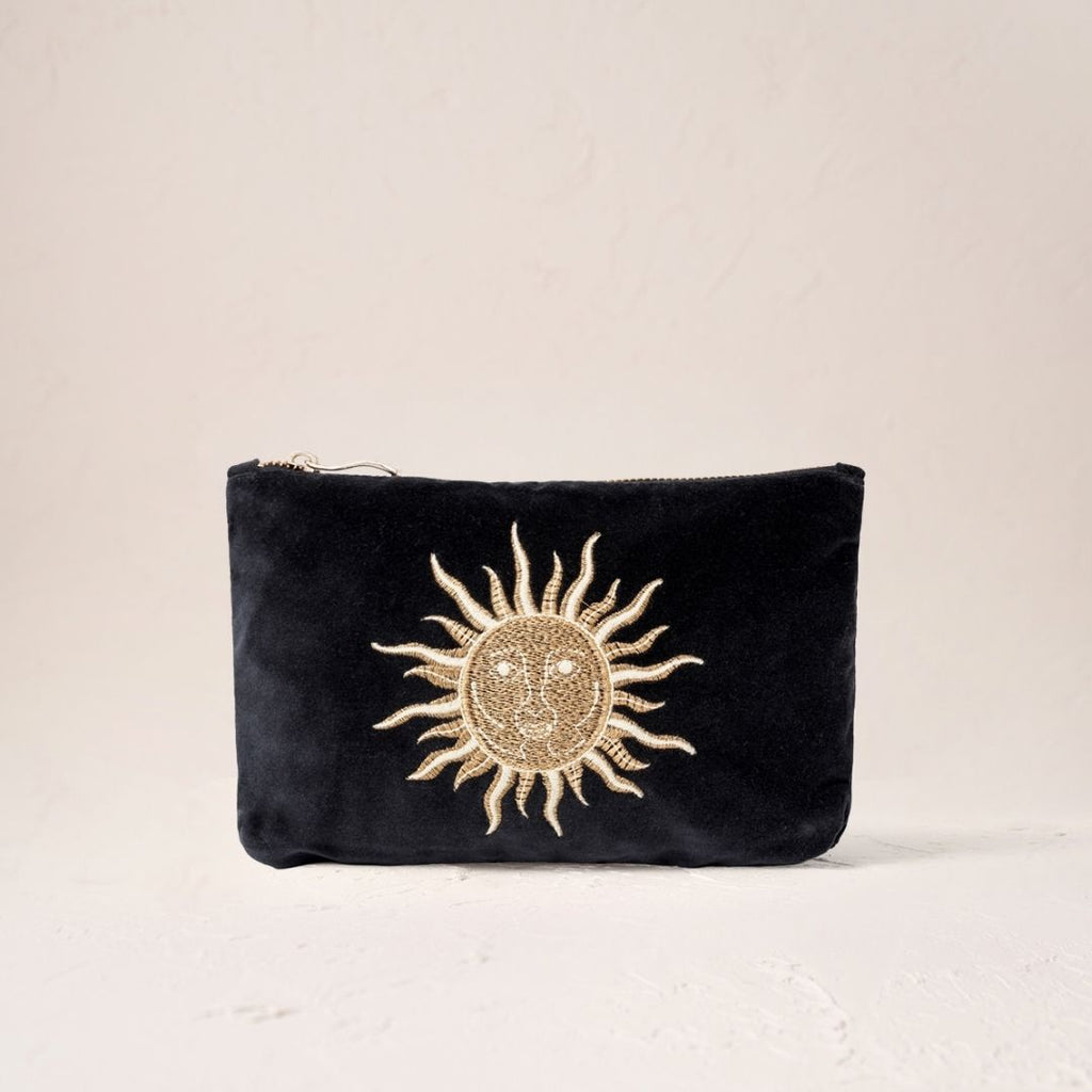 Featuring an intricately embroidered golden sun on a base of charcoal black velvet, this beautiful Elizabeth Scarlett mini pouch would make a treasured Christmas gift for the beauty lover in your life.