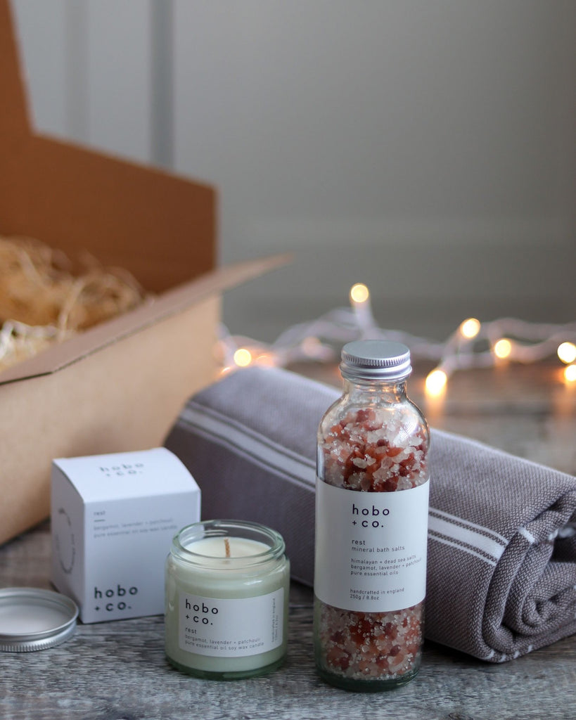 • Hobo + co 'Rest' Aromatherapy Bath Salts - to soften and detoxify skin, relax muscles and bring on a sense of soothing calm after a long day.